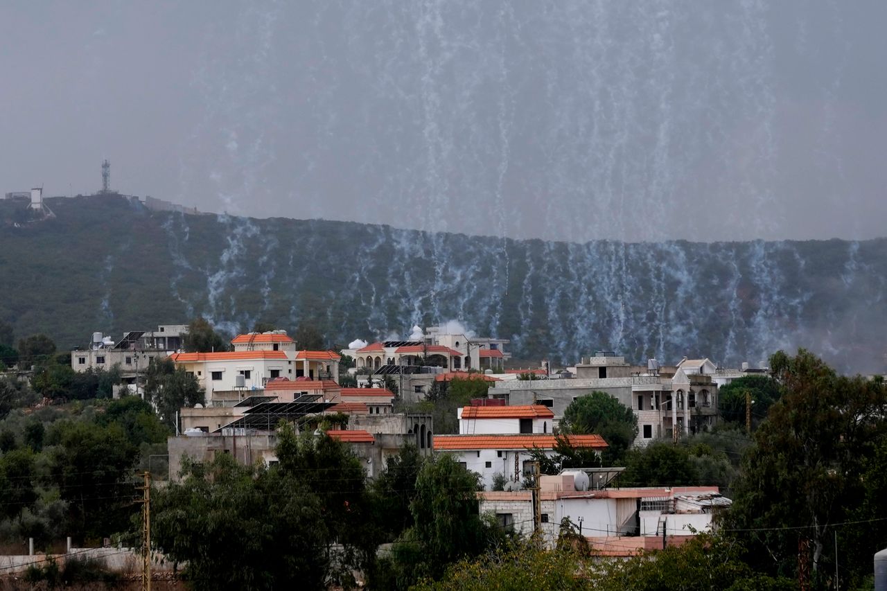 以色列炮兵的炮彈在黎巴嫩邊境村莊艾塔沙阿布上空爆炸。圖片來源:侯賽因·馬拉/美聯社