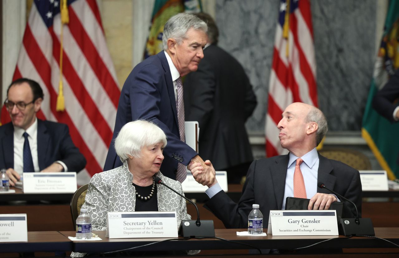 美聯儲主席傑羅姆·鮑威爾7月28日在華盛頓與美國證券交易委員會主席加里·根斯勒和財政部長珍妮特·耶倫交談。圖片來源:凱文·迪奇/蓋蒂圖片社本文發表於2023年10月24日的印刷版,標題為《為短暫的經濟繁榮做好準備》。