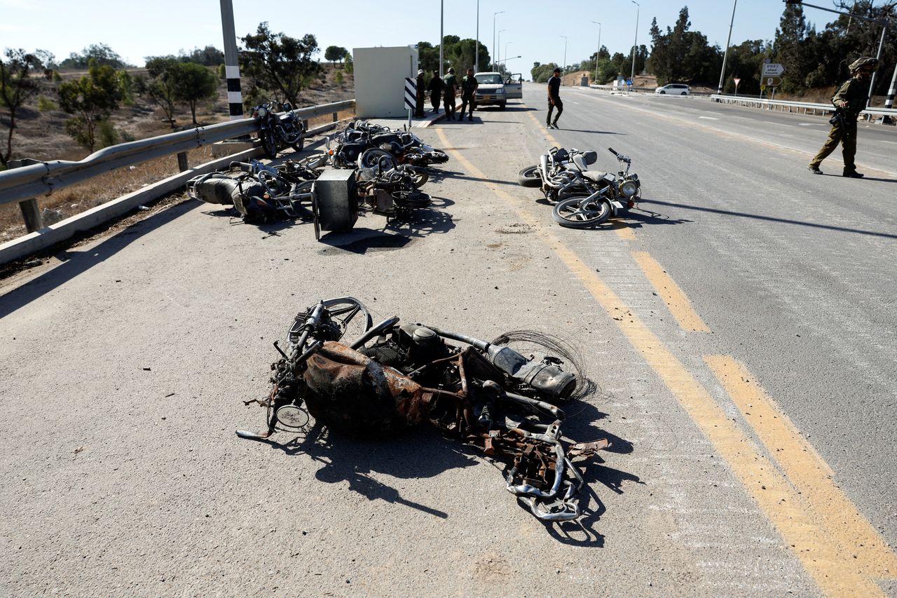 哈馬斯武裝分子襲擊以色列南部基蘇菲姆基布茲時使用的摩托車。照片:阿米爾·科恩/路透社