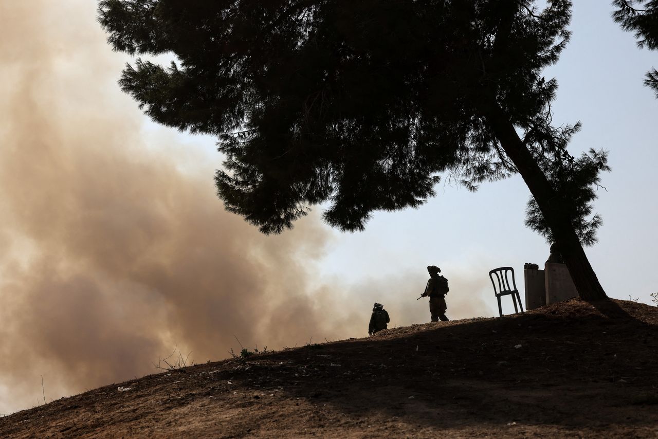 以色列士兵查看從加沙發射至以色列南部的火箭彈襲擊現場。圖片來源:Violeta Santos Moura/路透社內塔尼亞胡還警告黎巴嫩真主黨不要介入衝突,稱該組織像哈馬斯在加沙那樣,將自己隱藏在黎巴嫩平民之中。
