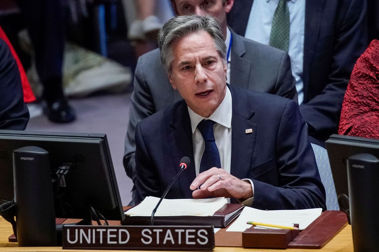 美國國務卿安東尼·布林肯週三在紐約聯合國安理會就持續以巴衝突召開的會議上發言。圖片來源:eduardo munoz/Shutterstock出現在2023年10月25日的印刷版中,標題為《拜登與伊朗的紅線時刻》。