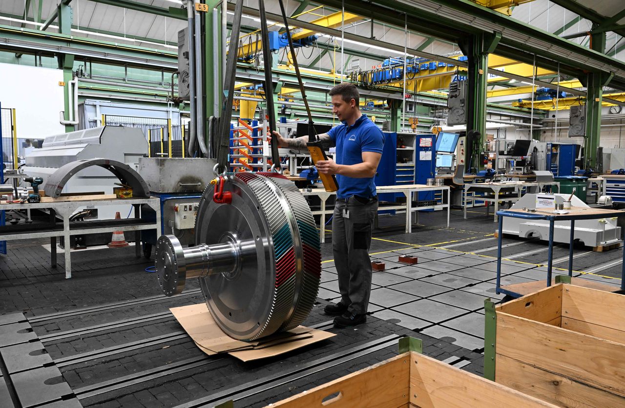 德國南部奧格斯堡的齒輪製造公司倫克(Renk)裝配車間內,一名員工正在操作齒輪。圖片來源:christof stache/Agence France-Presse/Getty Images採購經理人調查數據顯示,週二歐元區經濟活動正以超出預期的速度收縮,產出急劇下降且需求疲軟,這預示着貨幣聯盟可能面臨嚴重衰退。