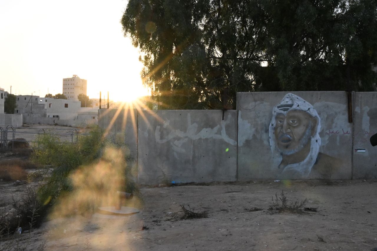 小加沙區牆上的塗鴉描繪了已故巴勒斯坦領導人亞西爾·阿拉法特。聯繫記者:蘇內·恩格爾·拉斯穆森 [email protected],迪昂·尼森鮑姆 [email protected],多夫·利伯 [email protected]