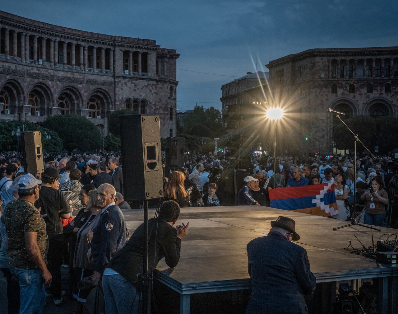 警方設置路障阻止抗議者接近政府建築。作為前記者和曾入獄的政治犯,帕希尼揚在2018年反政府抗議後首次掌權。俄羅斯總統普京長期對其持懷疑態度,普京厭惡所謂的"顏色革命”。2020年,當石油資源豐富的阿塞拜疆擊敗亞美尼亞軍隊、收復被亞美尼亞人佔領數十年的地區時,俄羅斯選擇袖手旁觀。9月,俄羅斯擔保的停火協議破裂,阿塞拜疆軍隊幾乎未遇抵抗就佔領了納卡地區,導致該飛地近10萬亞美尼亞族人被迫逃離家園。