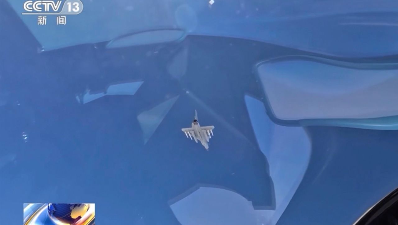 中國中央電視台視頻截圖顯示,一架中國戰鬥機飛越台灣附近空域。圖片來源:美聯社美中之間現役軍事溝通渠道寥寥無幾,這使雙方共同緩解緊張局勢的協調變得更加困難。