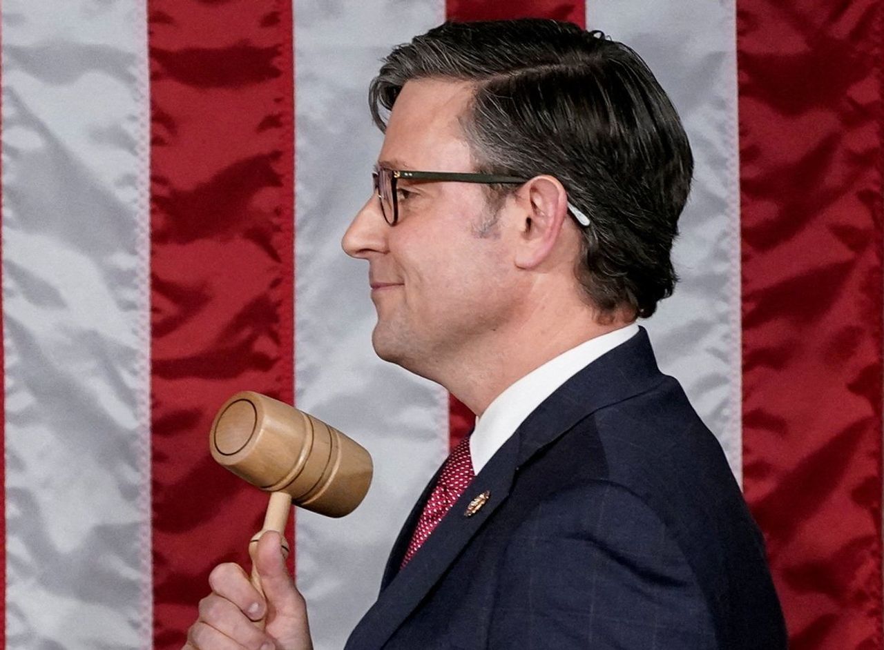 眾議院議長邁克·約翰遜(共和黨,路易斯安那州)10月25日在華盛頓。照片:伊麗莎白·弗蘭茨/路透社刊登於2023年10月27日印刷版,標題為《拜登的補充戰爭遊戲》。