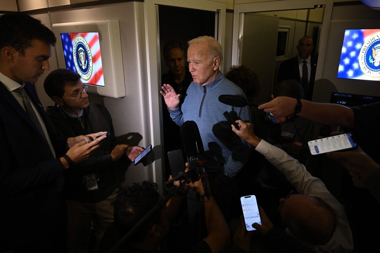 拜登總統上週從以色列返程時在空軍一號上接受記者採訪。圖片來源:Brendan Smialowski/AFP/Getty Images在會晤前夕,總統近期表態顯示出比10月7日恐襲事件剛發生時對阿拉伯世界更多的支持。他在週三記者會上重申對"兩國方案"的承諾,並譴責以色列定居者在約旦河西岸襲擊巴勒斯坦人的行為。