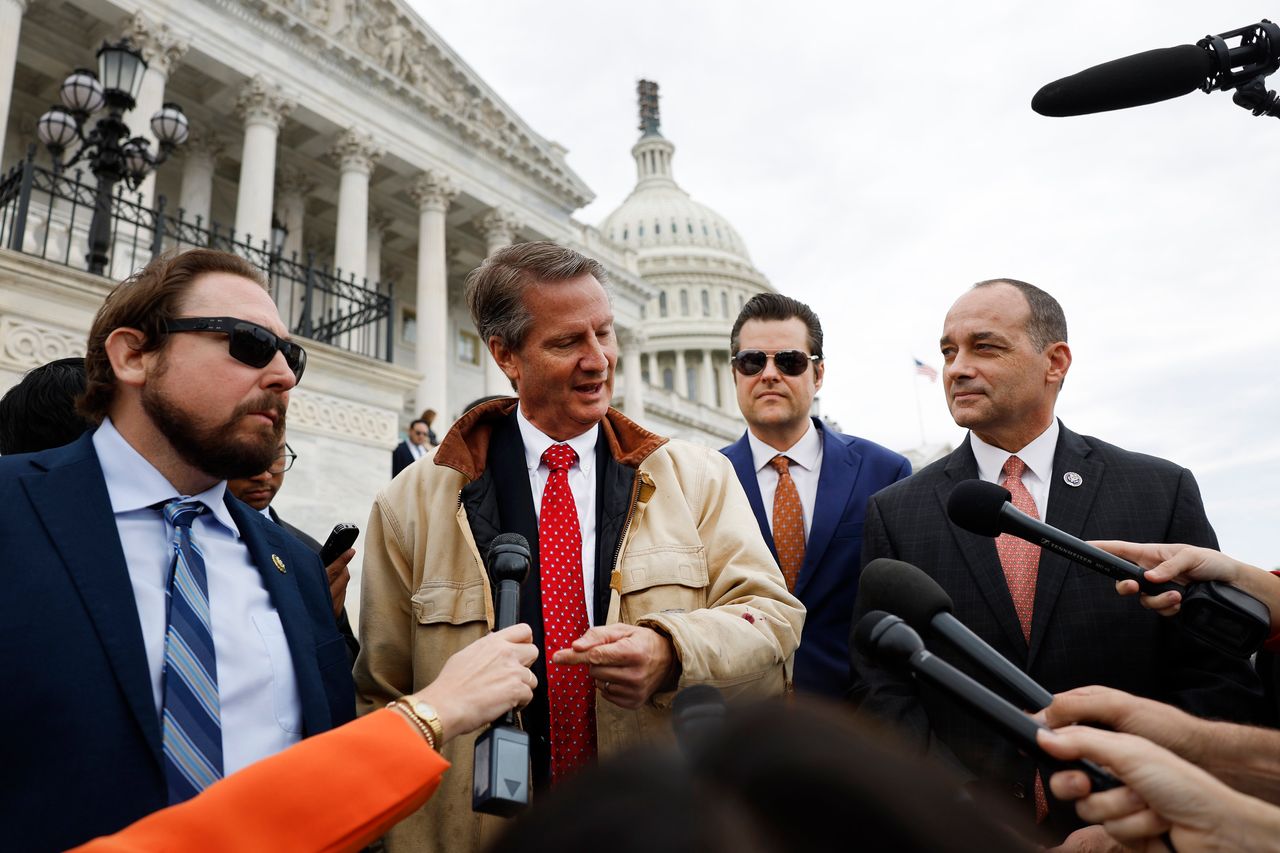 從左至右,亞利桑那州共和黨眾議員伊萊·克蘭、田納西州共和黨眾議員蒂姆·伯切特、佛羅里達州共和黨眾議員馬特·蓋茨和弗吉尼亞州共和黨眾議員鮑勃·古德,他們都投票支持罷免凱文·麥卡錫的議長職務,就尋找新議長一事向記者發表講話。照片:Anna Moneymaker/Getty Images民主黨人表示,雖然一些共和黨人可能希望淡化最近的爭鬥,但當下一輪立法截止日期臨近時,他們在意識形態和戰略上的分歧將更難忽視。政府目前的資金將於下個月到期,共和黨議員在如何處理對烏克蘭的援助問題上存在分歧,更不用説與控制參議院和白宮的民主黨人談判了。