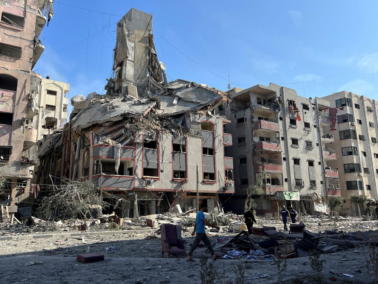 加沙城阿克薩醫院附近遭以色列空襲後受損的居民樓。圖片來源:穆罕默德·阿爾-馬斯里/路透社據哈馬斯控制的衞生部稱,夜間空擊擊中了加沙北部土耳其巴勒斯坦友誼醫院和阿克薩醫院附近目標,以及阿赫利阿拉伯醫院。