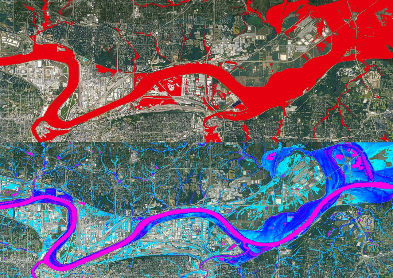 密蘇里州堪薩斯城百年一遇洪水事件的預測淹沒圖。聯邦應急管理局地圖(上)與布里斯托初創公司Fathom的地圖(下)對比。圖片來源:Fathom這些創新帶來的結果是,風險建模初創公司正越來越多地被用作第二意見提供方,尤其是專業再保險公司和投資者。它們還受益於"氣候評級"需求的激增——當市政債券發行或基礎設施項目推介時,氣候評級會與傳統信用評級並列呈現。