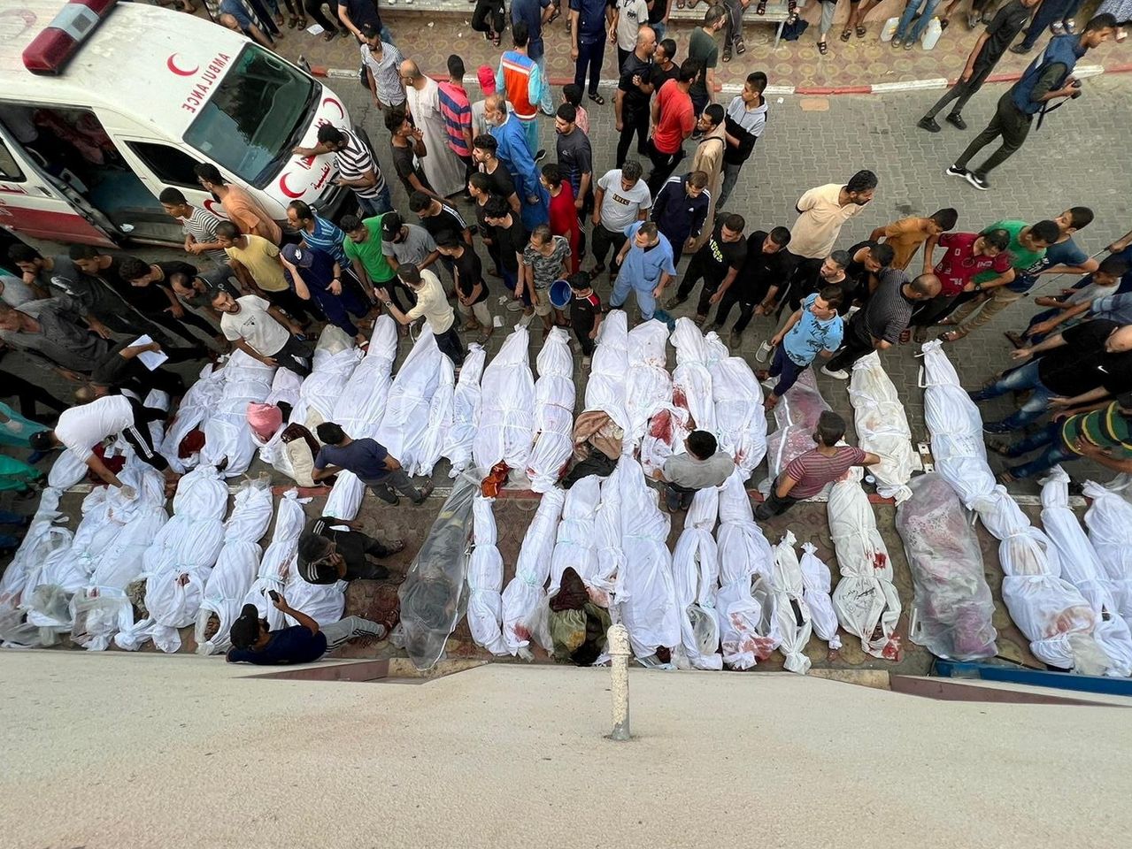賈巴利亞難民營空襲中遇難的巴勒斯坦人遺體停放在加沙北部醫院。圖片來源:法迪·瓦迪/路透社加沙地帶由哈馬斯控制的衞生部門表示,自以色列開始空襲以來,這片飛地已有超過8,520人喪生,其中大部分是婦女和兒童。該數據未區分武裝人員和平民。以色列官員稱,10月7日的襲擊導致以色列境內1,400多人死亡,約240人被劫持為人質。
