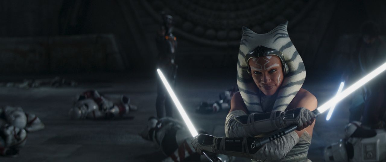 迪士尼+劇集《阿索卡》中的場景,該劇屬於《星球大戰》系列。圖片來源:盧卡斯影業有限公司該公司強調了近期電影在Disney+上的受歡迎程度,包括《瘋狂元素城》、漫威超級英雄電影《銀河護衞隊3》以及近期真人翻拍的《小美人魚》。