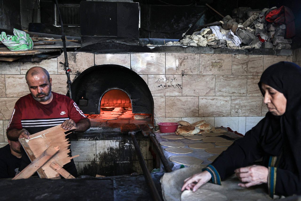 週三,加沙地帶南部拉法,一名麪包師正在劈柴生火烤爐。圖片來源:SAID KHATIB/法新社/蓋蒂圖片社