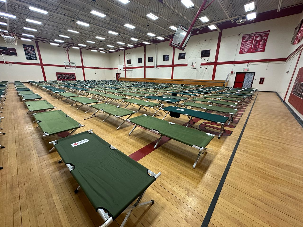 埃爾帕索社區準備中心(前莫爾黑德中學)內組裝的牀位。圖片來源:埃爾帕索市政府達戈斯蒂諾表示此舉對支援當地不堪重負的非營利庇護所十分必要。“我們每天都在幫助他們維持運轉,“他説。