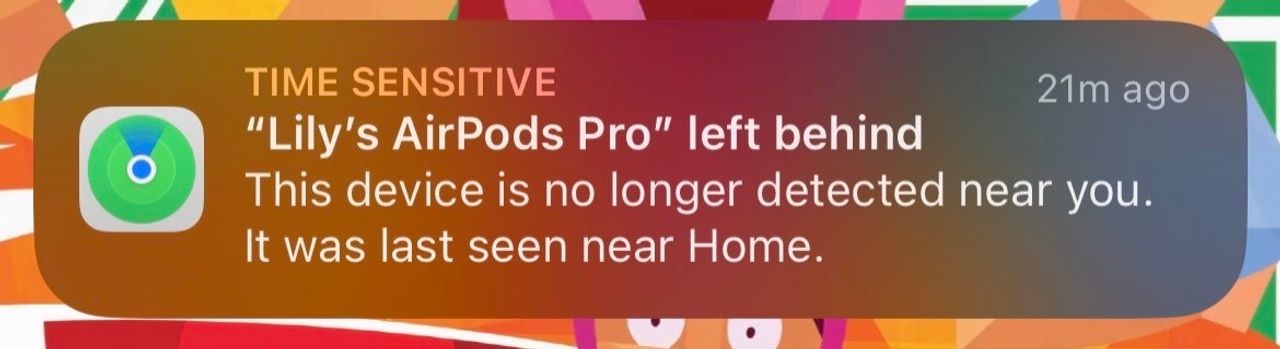 是的,她通過正舒適地塞在耳朵裏的AirPods Pro收到了這個令人不快的丟失通知。