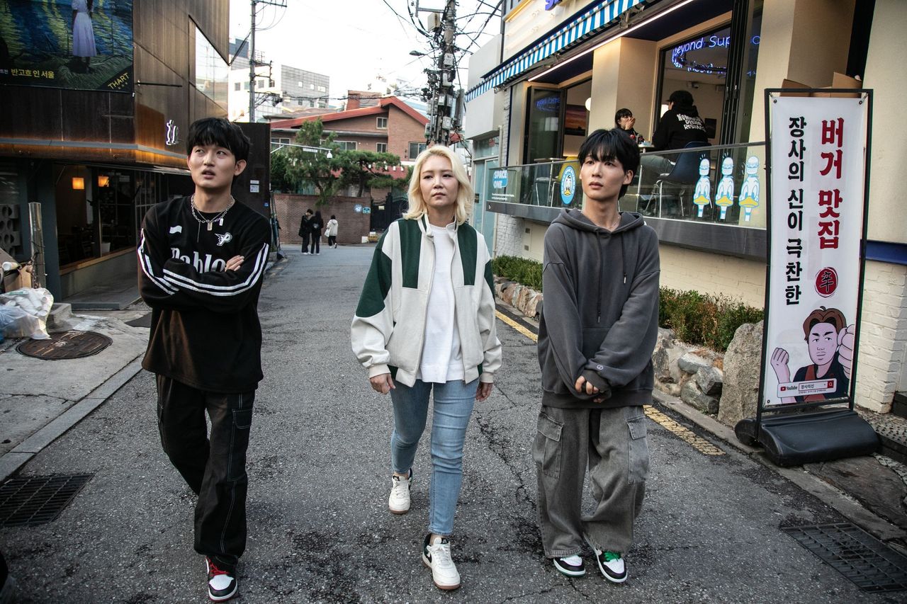 上月,Singing Beetle廠牌創始人Michelle Cho(中)與旗下組合SB Boyz成員柳赫(穿灰色連帽衫)及金碩(音)在首爾查看社交媒體動態圖片來源:Jean Chung for Wall Street Journal初次見面時,柳赫向Cho展示了自己創作的歌曲。Cho隨即為他提供週末説唱培訓。約一年後的2021年夏末,柳赫辭去三星工廠的工作,正式投身音樂事業。