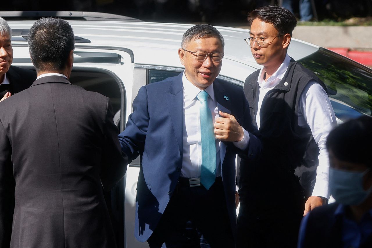 台灣民眾黨主席柯文哲週三抵達台灣兩大在野黨會談現場。圖片來源:Ann wang/Reuters兩黨表示,如果當選,他們將組建聯合政府,由當選總統負責國防、外交和兩岸事務,其餘事務由立法選舉決定。