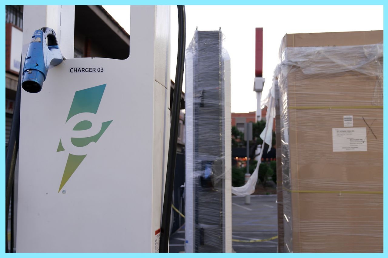 Electrify America僅在五年前推出,現在已經在更換大部分原有的快速充電器。在唐人街的美國銀行停車場,就像聖誕節早晨走下樓梯一樣,三個全新的充電器,還裹着塑料包裝!