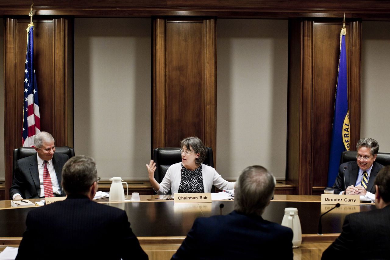 2011年時任FDIC主席希拉·貝爾(左為時任副主席格倫伯格)圖片來源:T.J. Kirkpatrick/彭博新聞社前僱員們指出,儘管做出該決定,貝爾比格倫伯格更關注機構普通員工的福祉。她曾發起改革機構文化、改善管理層與員工溝通的倡議。在她擔任主席的最後一年2011年,FDIC在其規模類別的最佳工作機構中排名第一,並保持榜首位置直至2017年。
