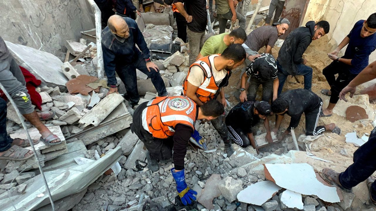 以色列空襲加沙北部賈巴利亞社區後,巴勒斯坦人正在搜尋傷亡者。圖片來源:法迪·阿爾維迪/路透社阿爾裏法伊表示,位於加沙城的法拉赫學校週五也發生爆炸,造成十餘人死亡。她指出約有4000人曾在該校避難。