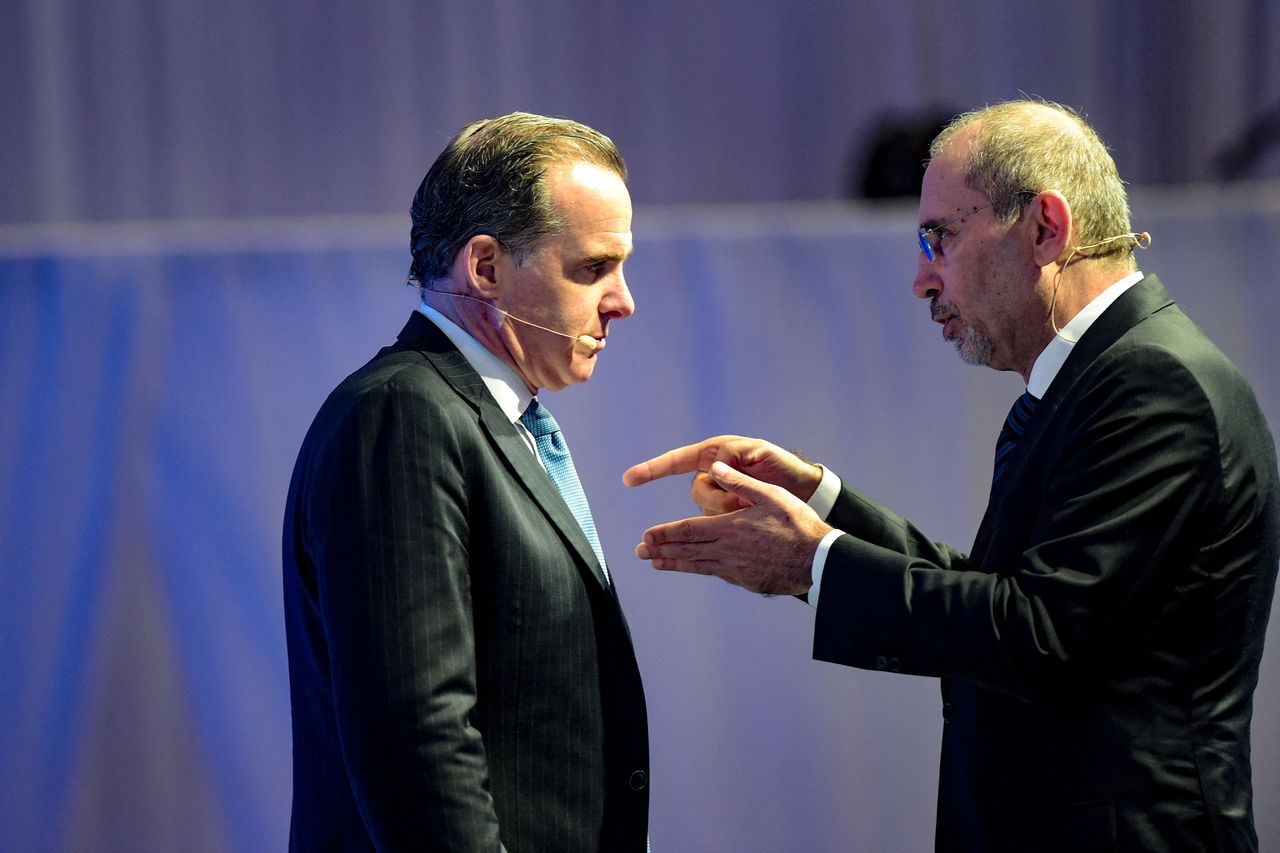 白宮中東事務高級官員佈雷特·麥格克與約旦外交大臣艾曼·薩法迪進行會談。圖片來源:馬贊·馬赫迪/法新社/蓋蒂圖片社“所有人都看到了問題所在,”曾在巴勒斯坦權力機構任職、現就職於華盛頓近東政策研究所的加阿思·奧馬裏表示,“但似乎沒有人知道該如何解決。”