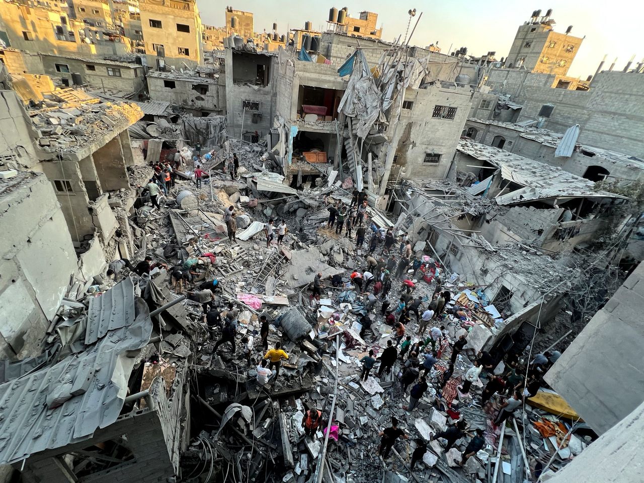 週六,加沙傑巴利耶遭空襲後,巴勒斯坦民眾在房屋廢墟中搜尋傷亡者。圖片來源:法迪·阿爾維迪/路透社阿爾蘇丹表示,印尼醫院已不堪重負,接收了大量來自鄰近傑巴利耶地區空襲的傷員。傑巴利耶是人口密集的社區,居住着以往與以色列戰爭中流離失所的難民。據聯合國稱,自週五以來,加沙地帶北部兩所收容數千人的聯合國學校遭到襲擊,造成24人死亡。阿爾蘇丹説,空襲造成的數百名傷員被送往印尼醫院。