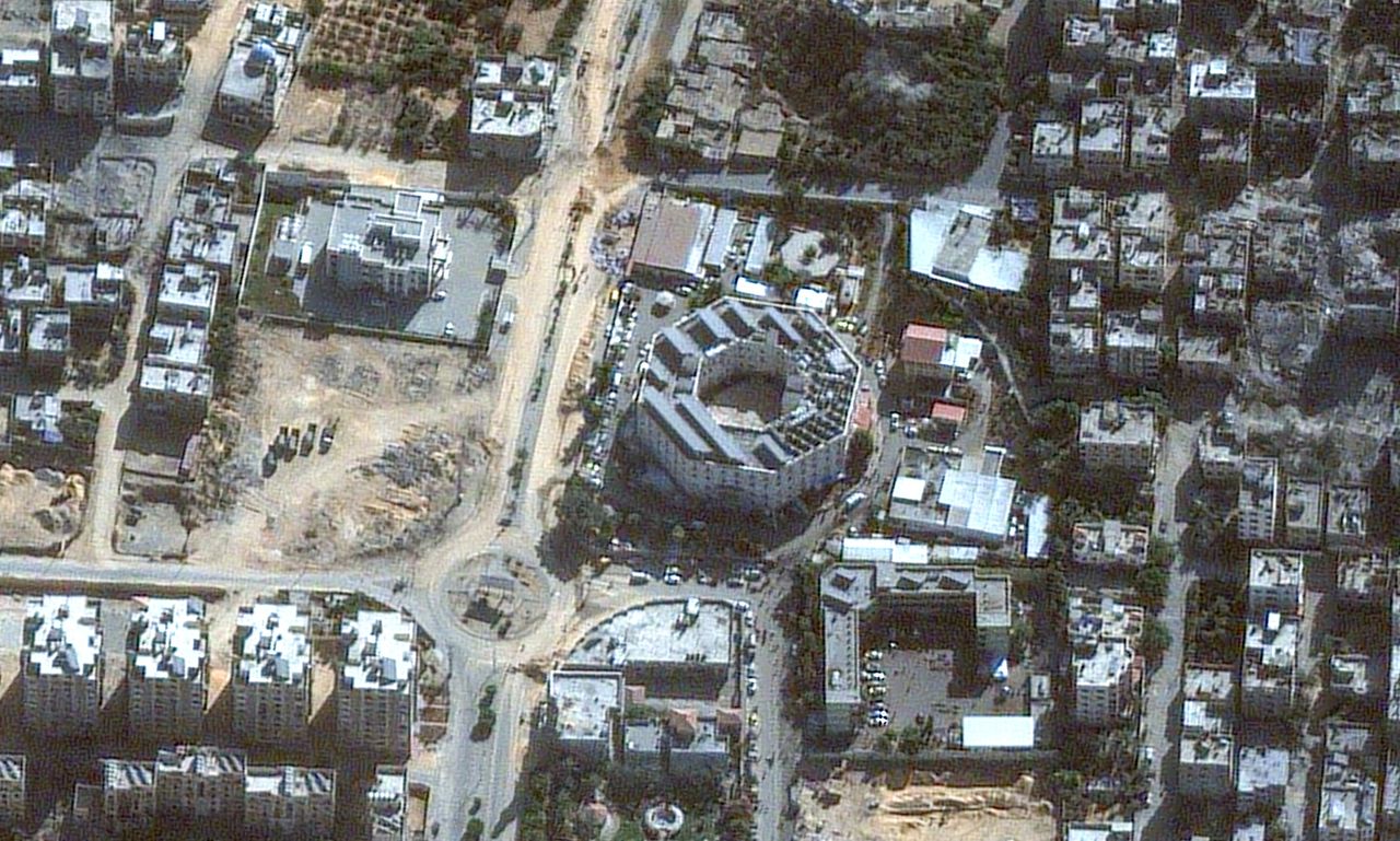 他表示,到2020年,這些建築材料已不可見,全部轉入地下。哈加里還展示了一張衞星圖像,顯示距離醫院250英尺處有一個前哨站,他稱哈馬斯在10月7日從該處向以色列發射火箭彈,並指控哈馬斯從醫院竊取燃料。