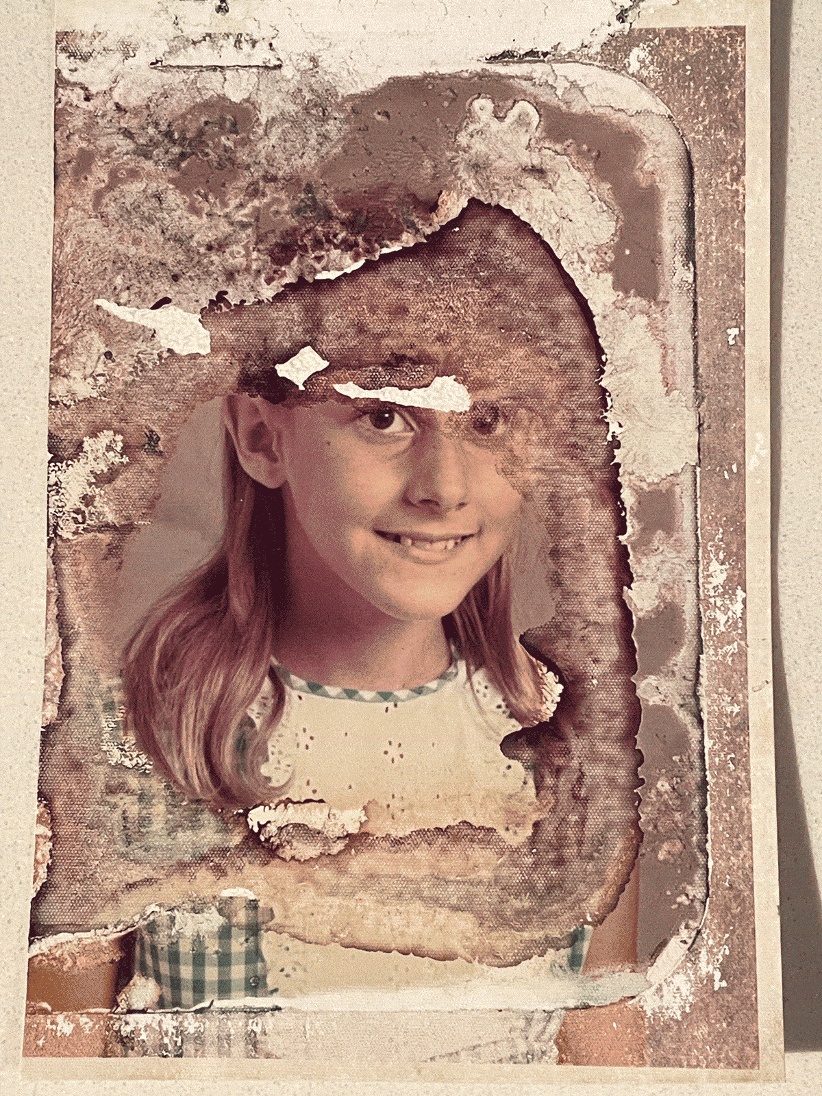 Margery Albertini對二年級拍照日唯一的記憶,就是穿着鮮綠色連衣裙時感覺自己多美。如今59歲的她,那張承載記憶的照片已嚴重損毀,她猜測可能是被水浸泡所致。