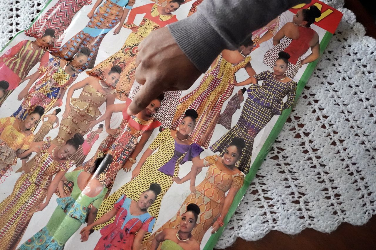 海報展示了拉斐爾·約瑟夫在津巴布韋當裁縫時設計的部分作品。他們在非洲的成年子女也希望有朝一日能來美國團聚。
