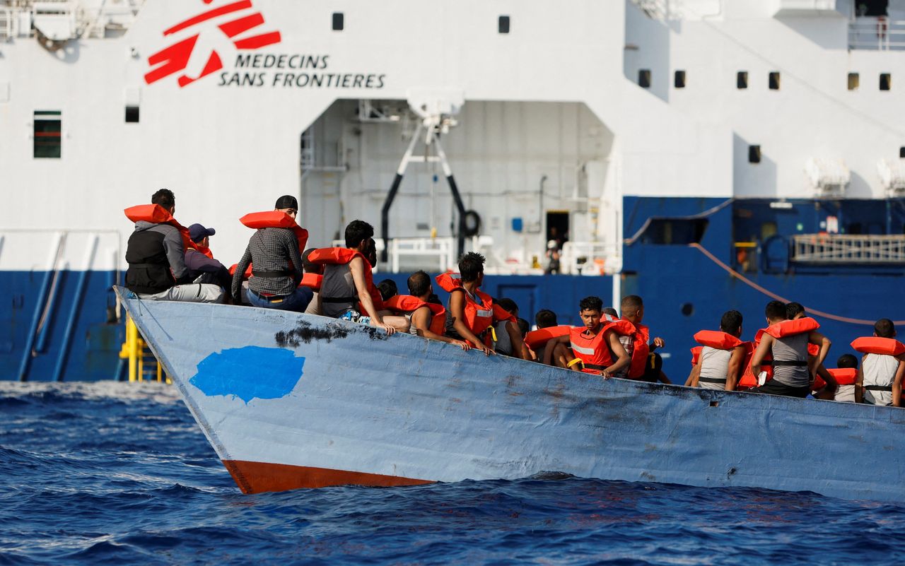 9月,在利比亞海岸附近的國際水域,無國界醫生組織運營的Geo Barents移民救援船的船員將一艘木船上的人帶到安全地帶。圖片來源:DARRIN ZAMMIT LUPI/REUTERS雖然法國選舉要到2027年才會舉行,但法國《費加羅報》最近的一項IFOP民調顯示,馬琳·勒龐領導的反對黨國民聯盟領先總統埃馬紐埃爾·馬克龍的復興黨8個百分點。