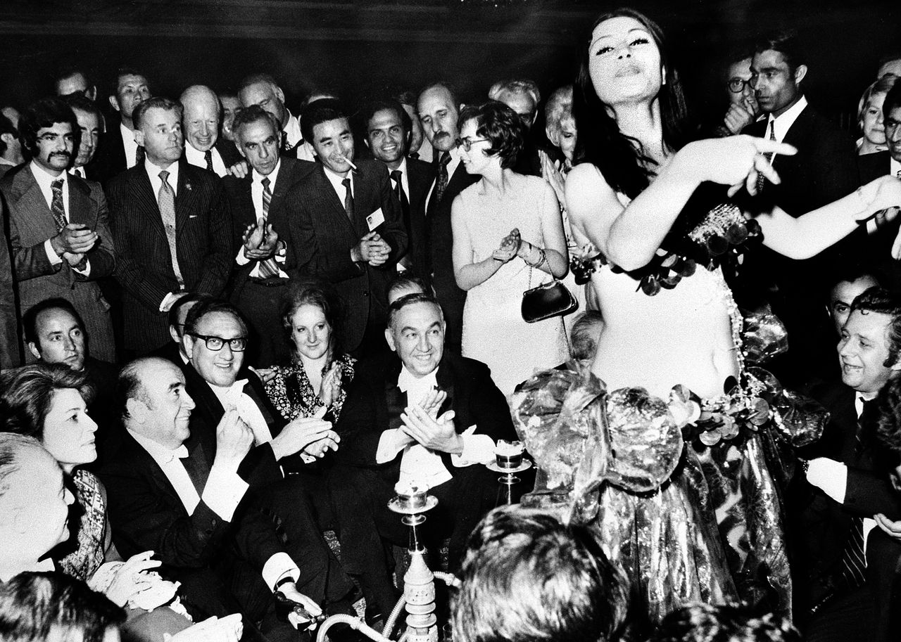 1972年,基辛格在德黑蘭與伊朗總理阿米爾·阿巴斯·胡韋達一起觀看肚皮舞表演。圖片來源:ASSOCIATED PRESS