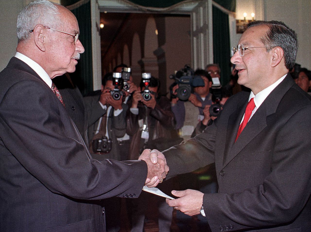 2000年,玻利維亞總統烏戈·班塞爾(左)在拉巴斯與美國大使維克多·曼努埃爾·羅查握手。圖片來源:路透社美國前大使維克多·曼努埃爾·羅查涉古巴間諜案可能是持續時間最長的案例,但絕非首例。