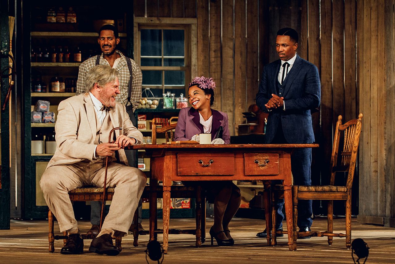 或許最令人振奮的百老匯復排劇目當屬**《珀利大捷》**,這部奧西·戴維斯1961年的喜劇講述了一位巡迴佈道者重返多年前逃離的南方種植園,企圖哄騙園主資助他建立自己的教堂。小萊斯利·奧多姆與才華橫溢的卡拉·楊分別飾演這位佈道者和他選中的年輕女幫手,為戴維斯這部至今仍具顛覆性的喜劇注入了輕盈的幽默感——劇中所有角色都被賦予了一種温情的諷刺,讓他們的理想主義或矇昧的惡行都透出荒誕色彩。