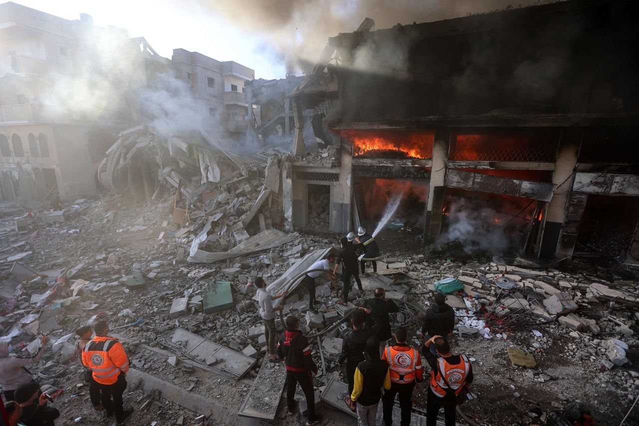 週六,消防員在加沙南部汗尤尼斯一棟遭以色列空襲的建築中奮力撲救火勢。圖片來源:法國新聞社/蓋蒂圖片社哈馬斯在10月7日襲擊以色列南部時劫持了數百名人質,近日公佈了包括部分已死亡人質在內的影像資料。以色列政府要求媒體不要播放人質視頻,稱這是心理戰手段。