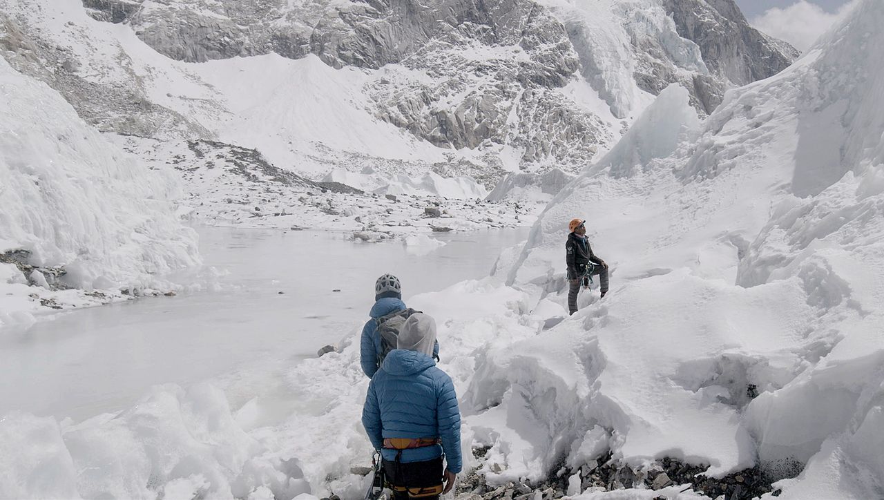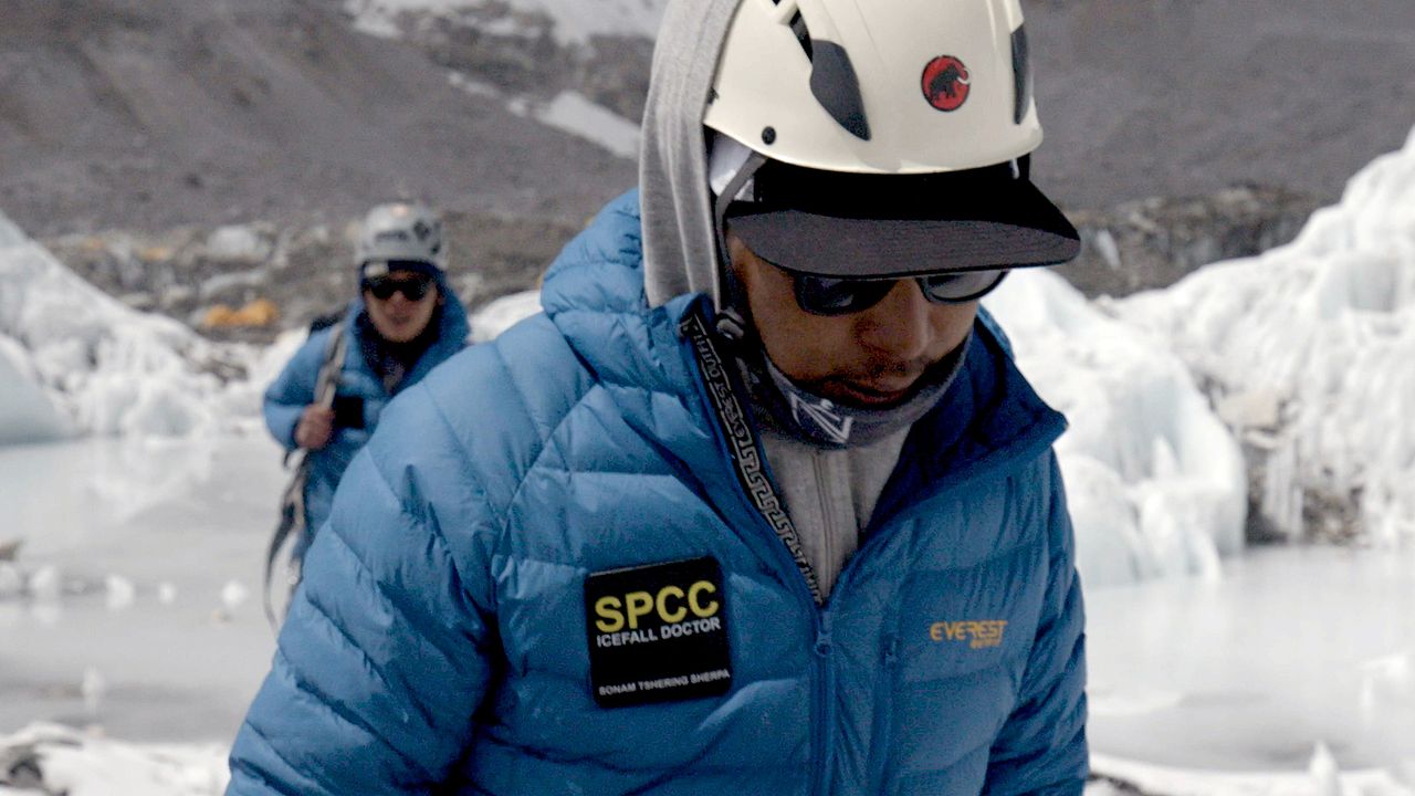 被分配在珠峯更高段運輸物資的夏爾巴人會輕裝穿越冰瀑以保存體力。最強壯的攀登者則需揹負成捆的重型繩索快速通過冰瀑區躲避雪崩,其中包括他的摯友彭巴·丹增·夏爾巴——兩人曾立下共同登頂全球14座8000米以上高峯的宏願,目前已征服九座。