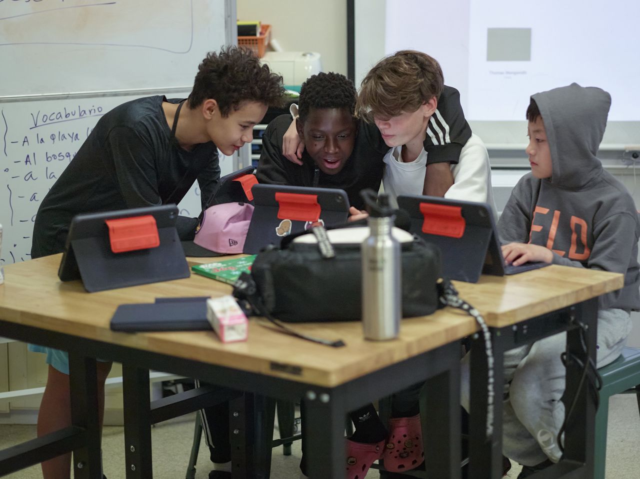 菲爾德中學允許學生在一些課堂作業中使用iPad,但在課間或午餐時間不能使用。從左到右:托馬斯·王史密斯、伊扎亞·凱勒-科爾曼、斯賓塞·漢德爾曼和內森尼爾·曾。其中一些學校正在這樣做。近年來,為了滿足男孩們的需要,一些全男生的中學——公立、特許和私立——開始開辦。在這些學校的圍牆內,男孩們得到了大量的實踐學習、頻繁的休息和充足的運動。一些男女同校的學校也在解決這個問題,將男孩和女孩分開上某些課程。而且他們取得了成功。