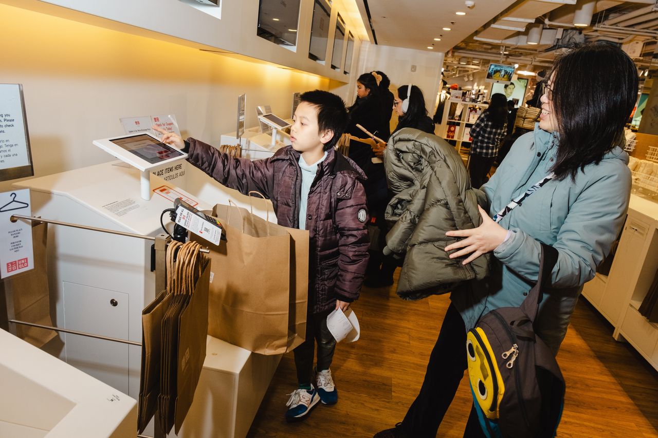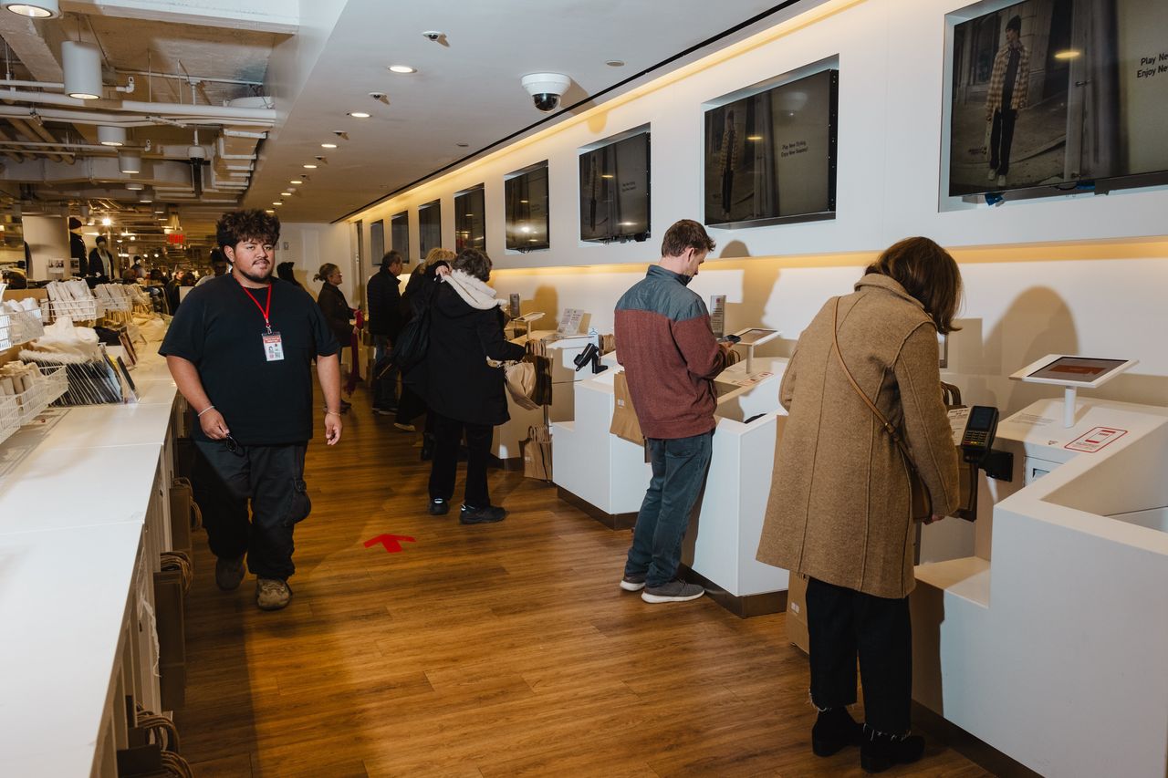 我最近在紐約第五大道的優衣庫旗艦店體驗了這一點,這家三層店鋪擠滿了假日購物者。頂層有兩個選擇。右邊是服務櫃枱,左邊是自助結賬。我選擇了左邊。