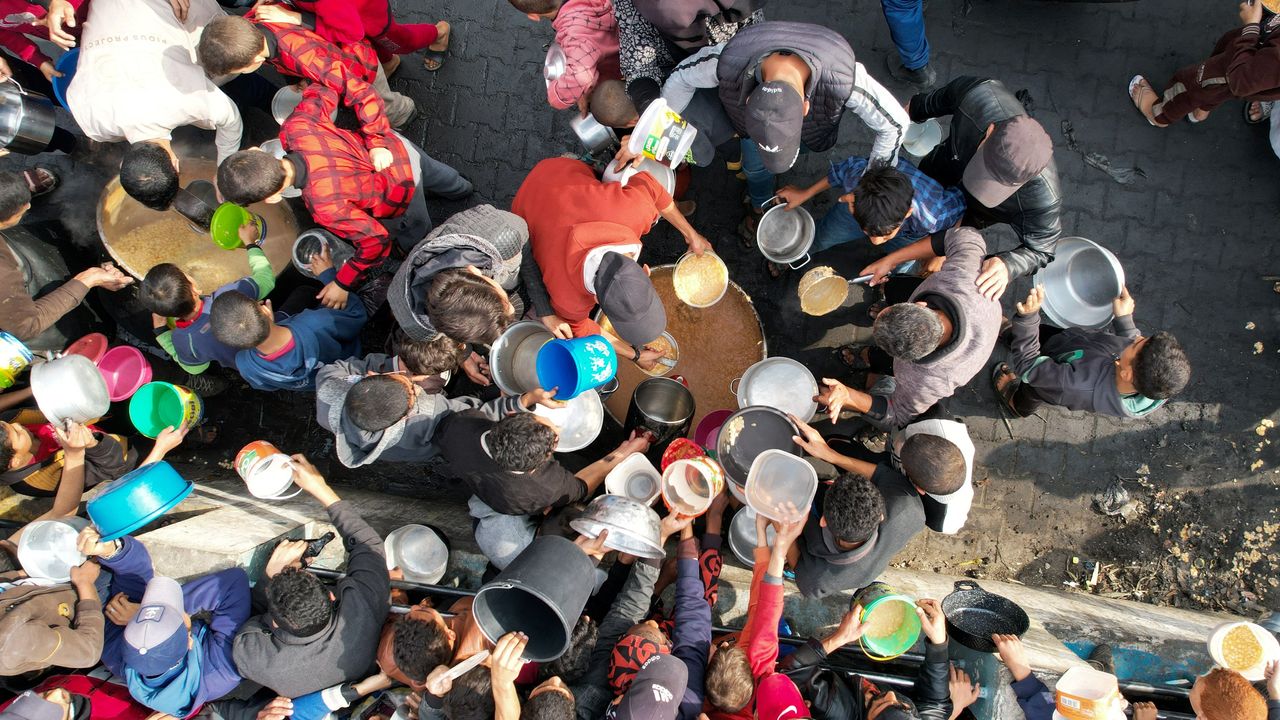 週日,加沙地帶南部拉法的一處慈善廚房正在分發食物。圖片來源:stringer/Reuters