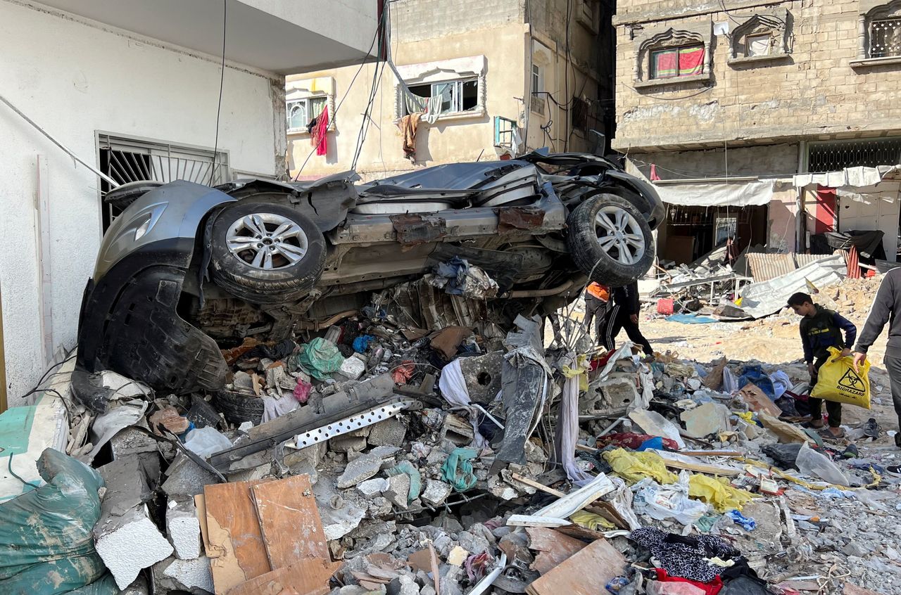 週六卡邁勒·阿德萬醫院的廢墟。圖片來源:路透社工作人員自本月早些時候以色列與哈馬斯臨時停火結束以來,加沙北部卡邁勒·阿德萬醫院周邊地區一直是激烈地面戰鬥和空襲的焦點。