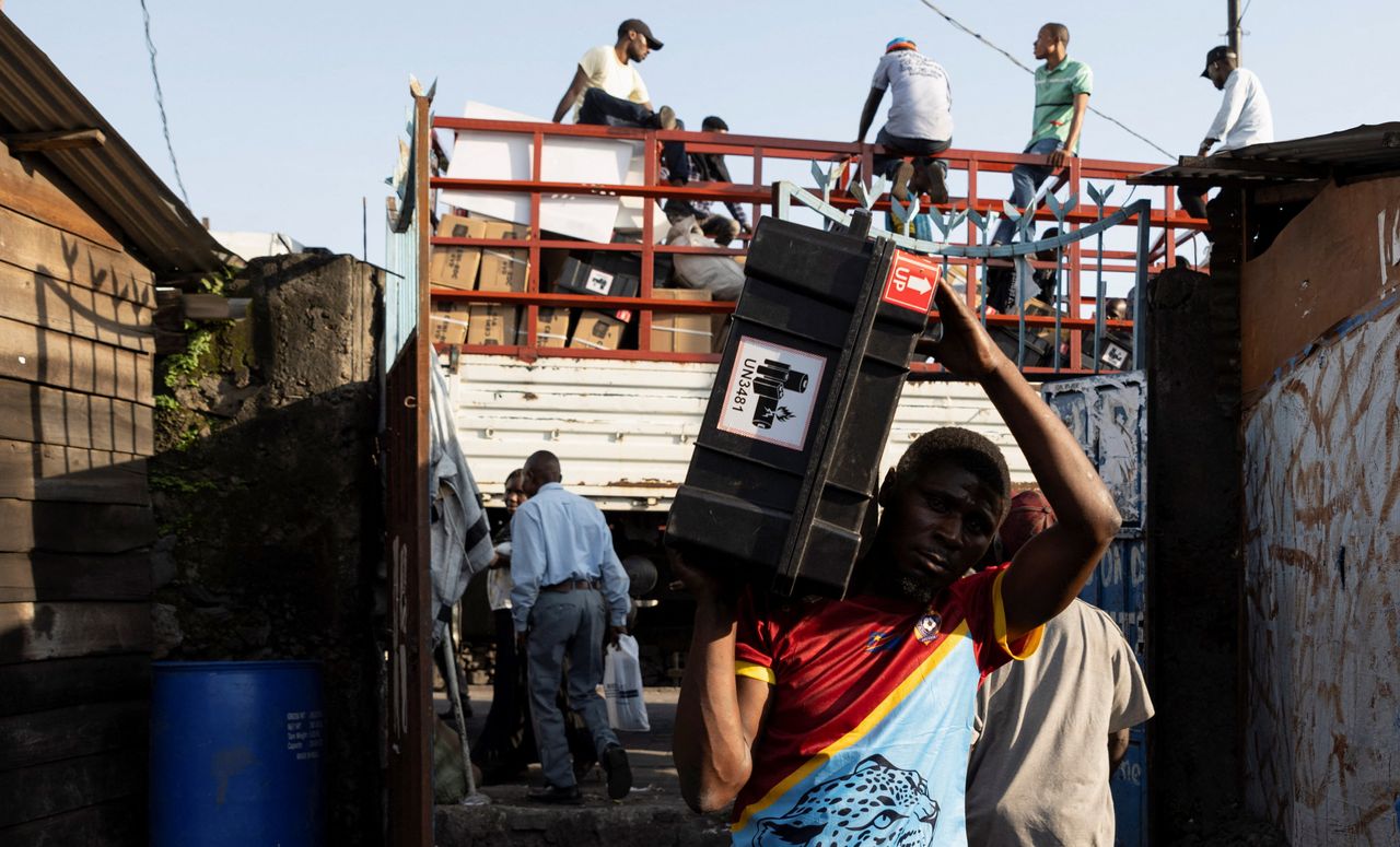 週二,剛果戈馬市的工人們領取了選舉工具包。圖片來源:arlette bashizi/Reuters烏干達坎帕拉——週三,剛果民主共和國的選民們開始投票。這個幅員遼闊的國家擁有製造電動汽車、智能手機和其他現代生活核心設備所需的許多礦物資源。然而,選舉因延誤、抗議和該國東部的戰爭而備受困擾。