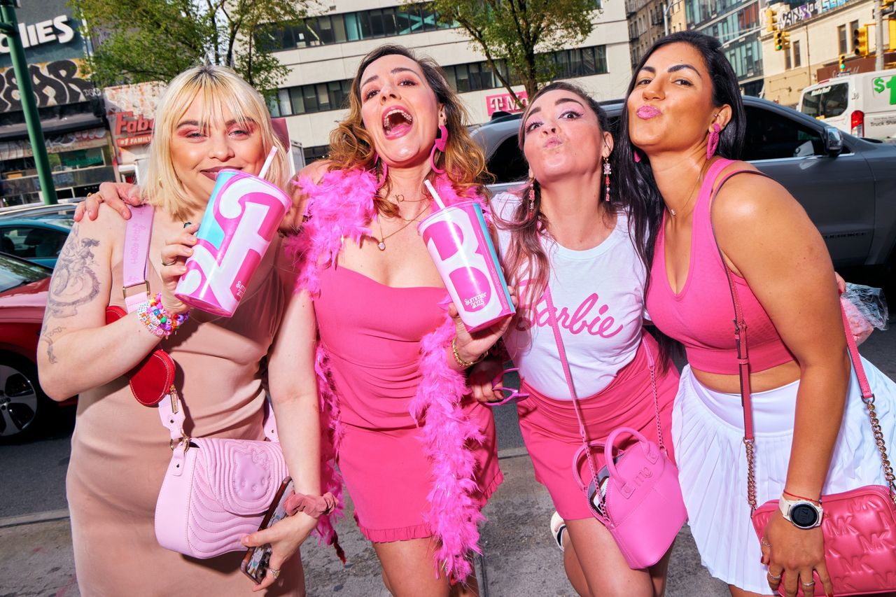 瑪麗亞、傑奎琳、琳恩和費恩在《芭比》與《奧本海默》首映日(劇透預警:她們看了《芭比》)。照片:Evan Angelastro/華爾街日報7月25日:推特更名為X