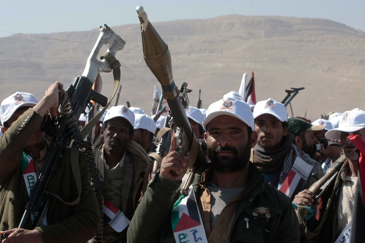 也門胡塞武裝成員在薩那舉行的遊行中高舉武器,聲援加沙人民。圖片來源:Osamah Yahya/Zuma Press西方及地區安全官員表示,伊朗準軍事部隊正向也門胡塞武裝提供即時情報和武器(包括無人機和導彈),該反叛組織正利用這些裝備襲擊穿越紅海的船隻。