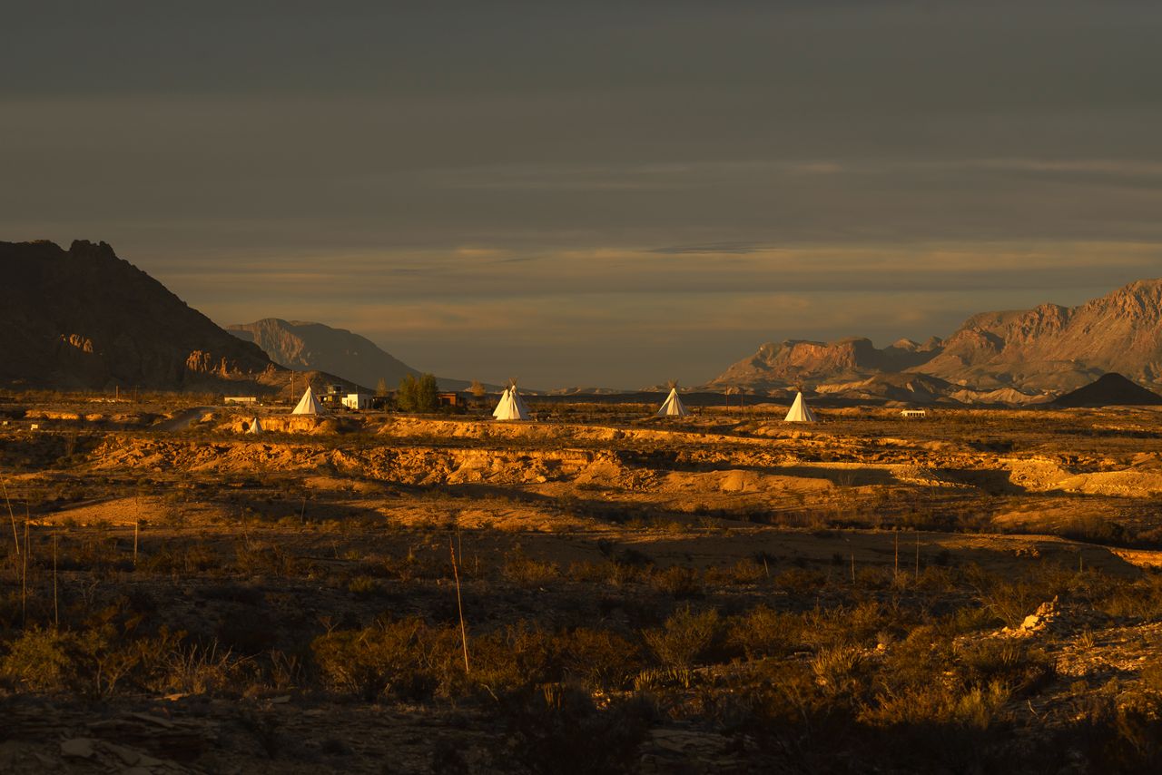 特靈瓜沙漠景觀中矗立着用於遊客住宿的圓錐帳篷,旅遊業的繁榮正在改變德克薩斯州最偏遠、最原始的地區之一。聯繫伊麗莎白·芬德爾,郵箱:[email protected]