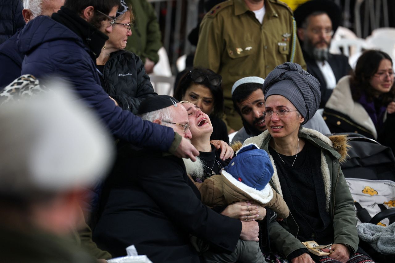 週三,在加沙南部陣亡的一名以色列預備役軍人的葬禮上,家屬們出席。圖片來源:Ronen Zvulun/路透社Abeer Ayyoub、Fatima AbdulKarim 和 Anat Peled 對本文有貢獻。