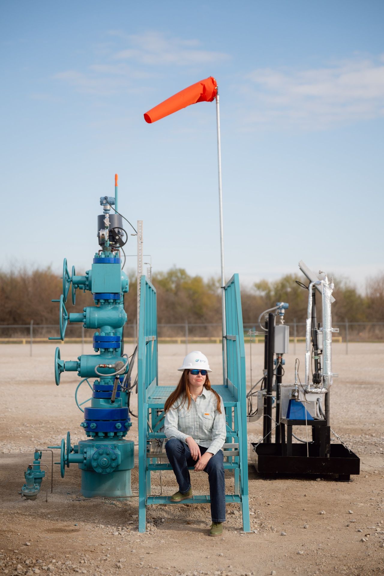 BKV碳捕集與封存業務負責人勞倫·裏德在德克薩斯州布里奇波特的一口注入井旁。過去一年間,隨着天然氣價格下跌及收購帶來的債務累積,BKV一度瀕臨違反債務契約的境地,直至貸款方同意豁免。該公司暫停了上市計劃,並從其母公司——一家泰國煤炭集團獲得了1.5億美元的注資。為實現零碳目標,BKV計劃鑽探大量新氣井,但尚未獲得所需資金,這項開支可能高達10億美元。