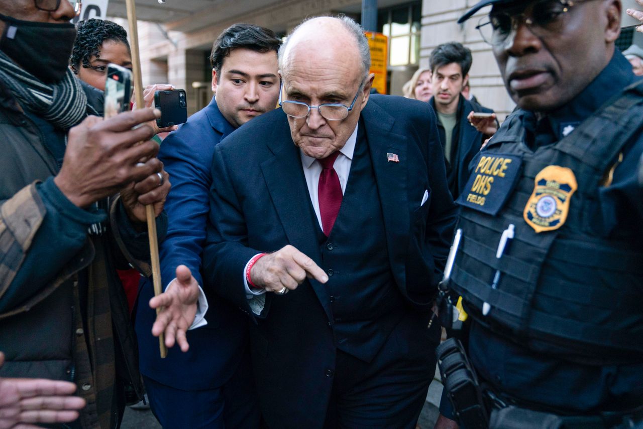 特朗普前律師魯迪·朱利安尼是該案中最受矚目的被告之一。圖片來源:Jose Luis Magana/美聯社最初19名被告中已有四人達成認罪協議:西德尼·鮑威爾、肯尼斯·切斯布羅、詹娜·埃利斯和斯科特·霍爾。