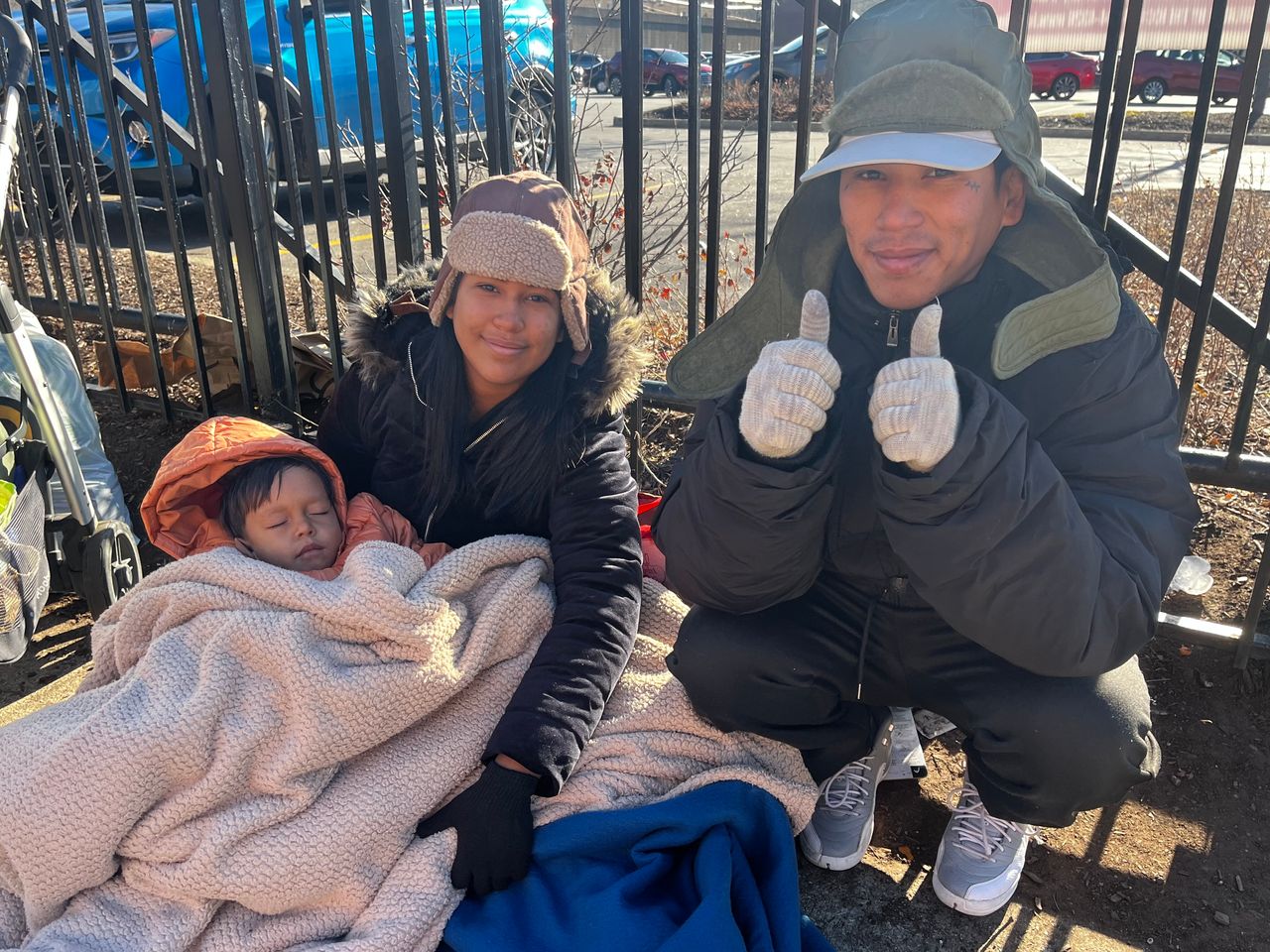 威爾弗雷多·何塞·瓦斯奎茲與妻子安德莉亞·門德斯帶着兒子,在芝加哥Whole Foods超市停車場外尋求捐助。圖片來源:喬·巴雷特/華爾街日報他們表示,在警察局停留幾小時後,被轉移到芝加哥埃奇沃特社區收容所。那裏食物充足,但個人空間狹小,此起彼伏的爭吵聲讓人難以入睡。“但總比露宿街頭強多了,“門德斯説。