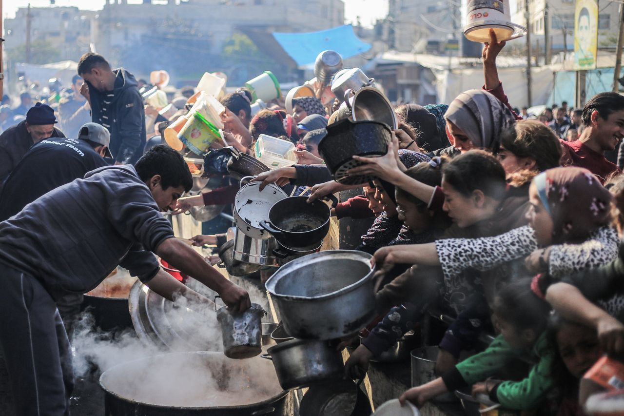 巴勒斯坦民眾在拉法慈善廚房領取食物。照片:Mohammed Talatene/Zuma Press該計劃還遭到巴勒斯坦權力機構的反對。美國希望該機構能在戰後參與加沙地帶治理。巴解組織秘書長侯賽因·謝赫週日表示,以色列控制費城走廊將意味着"重新佔領……終止與巴解組織的所有協議”。巴勒斯坦權力機構是約旦河西岸巴勒斯坦人的政府,巴解組織則是巴勒斯坦人在國際上的政治代表。