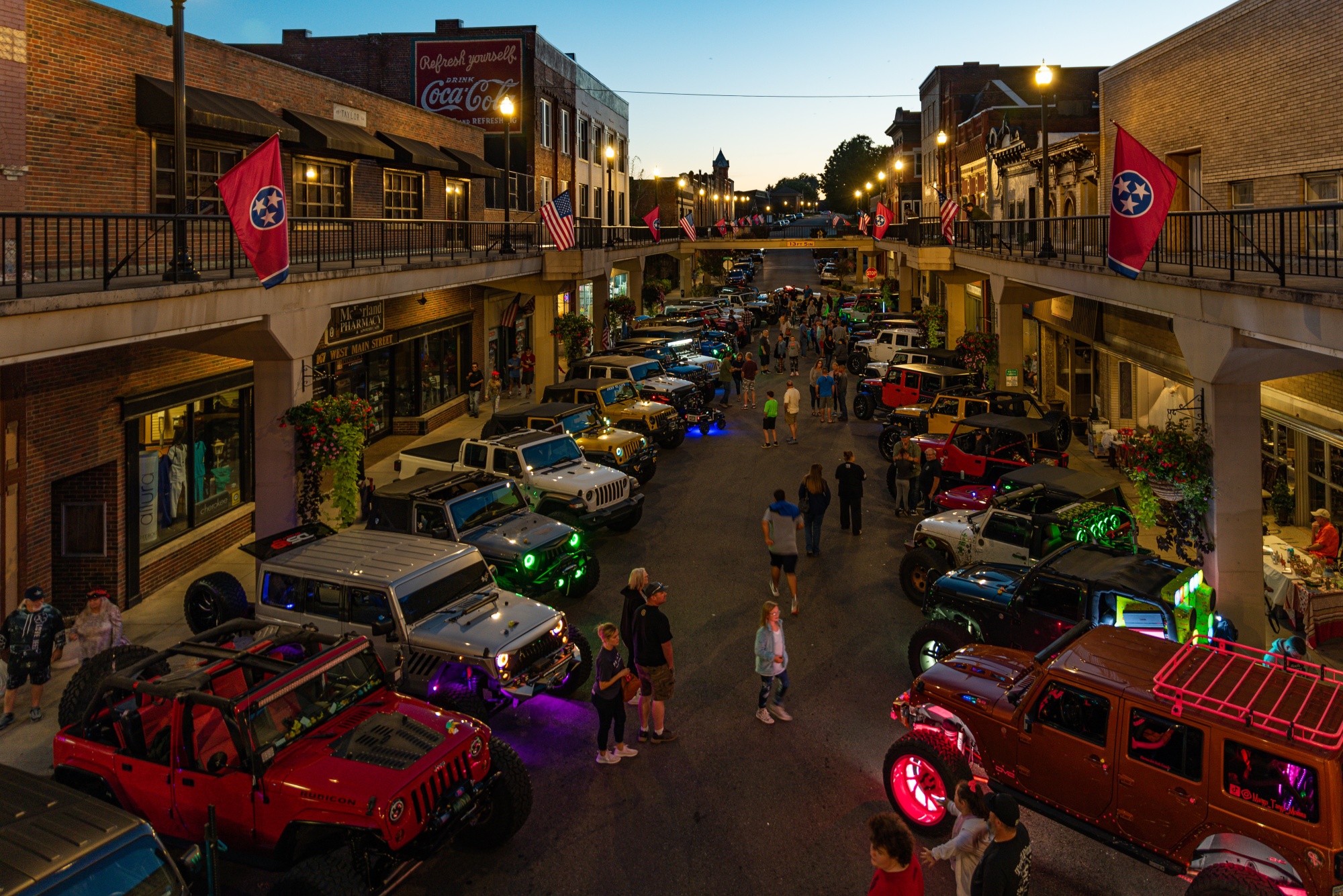莫里斯敦的吉普節提供了展示Skymart吸引力的機會。照片由喬·摩爾提供我們在1907 Brewing見面,這是一家位於主街上的釀酒廠,於2019年開業。它的老闆大衞·埃利斯帶我上了二樓的一個活動空間,那裏有一幅可口可樂壁畫,畫在外露的磚牆上,埃利斯説他在翻修115年曆史的建築時發現了這幅壁畫。他將Skymart納入了釀酒廠的設計,包括一樓的户外座位,頂上的人行道可以保護顧客免受雨水侵襲。