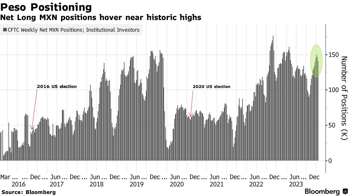 總的來説,自去年底以來,根據每週CFTC數據,對進一步比索升值的押注一直在積累。多頭頭寸的增加預示着逆轉風險的增加,這可能加劇貨幣走低的動力。